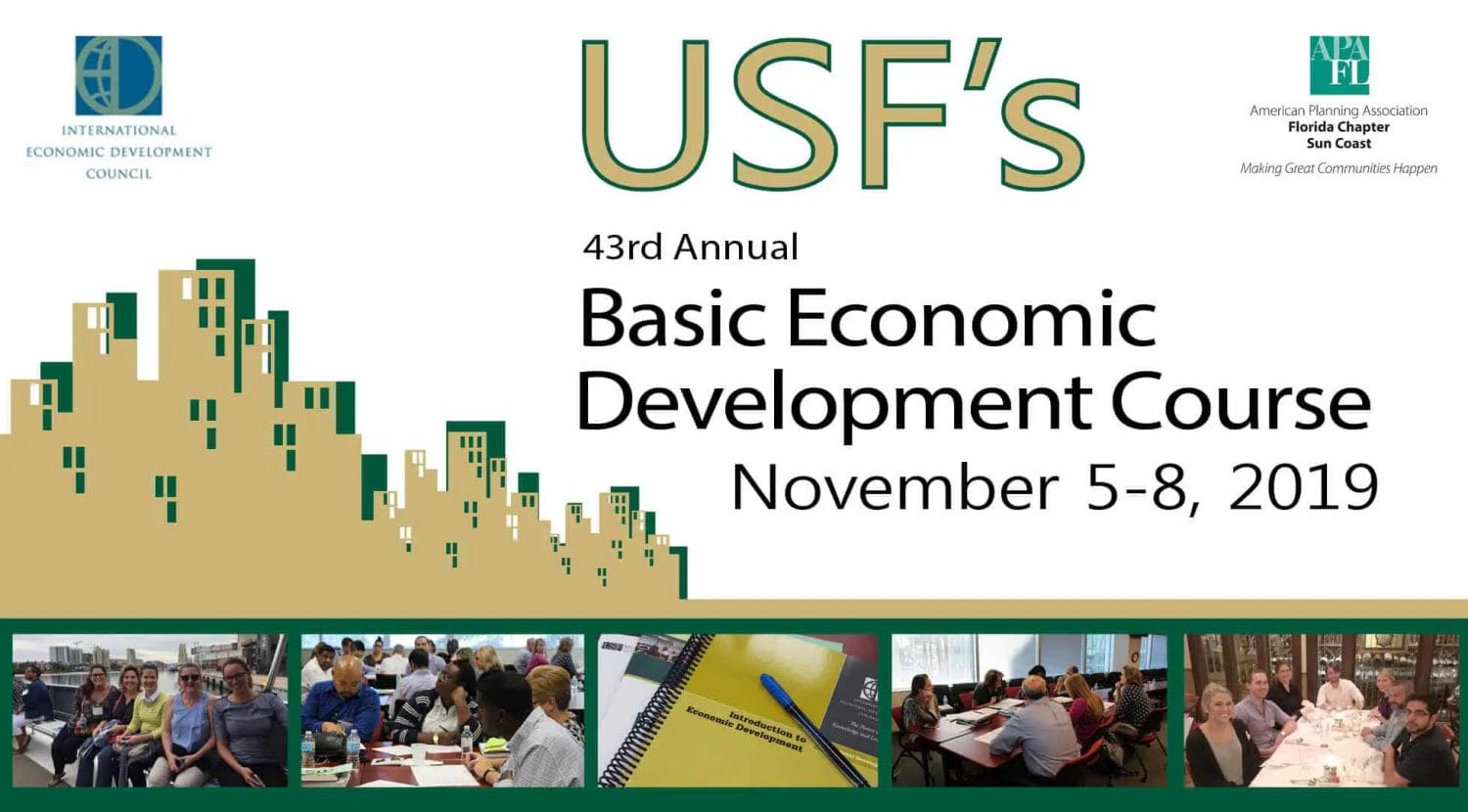 This course is accredited by the International Economic Development Council (IEDC) and the American Planning Association (APA), Florida Chapter Sun Coast. The BEDC is a 4-day course and each registrant is required to attend all modules of the course in order to receive a completion certificate. This course qualifies as a professional development training requirement needed to sit for the Certified Economic Developer (CEcD) examination.
